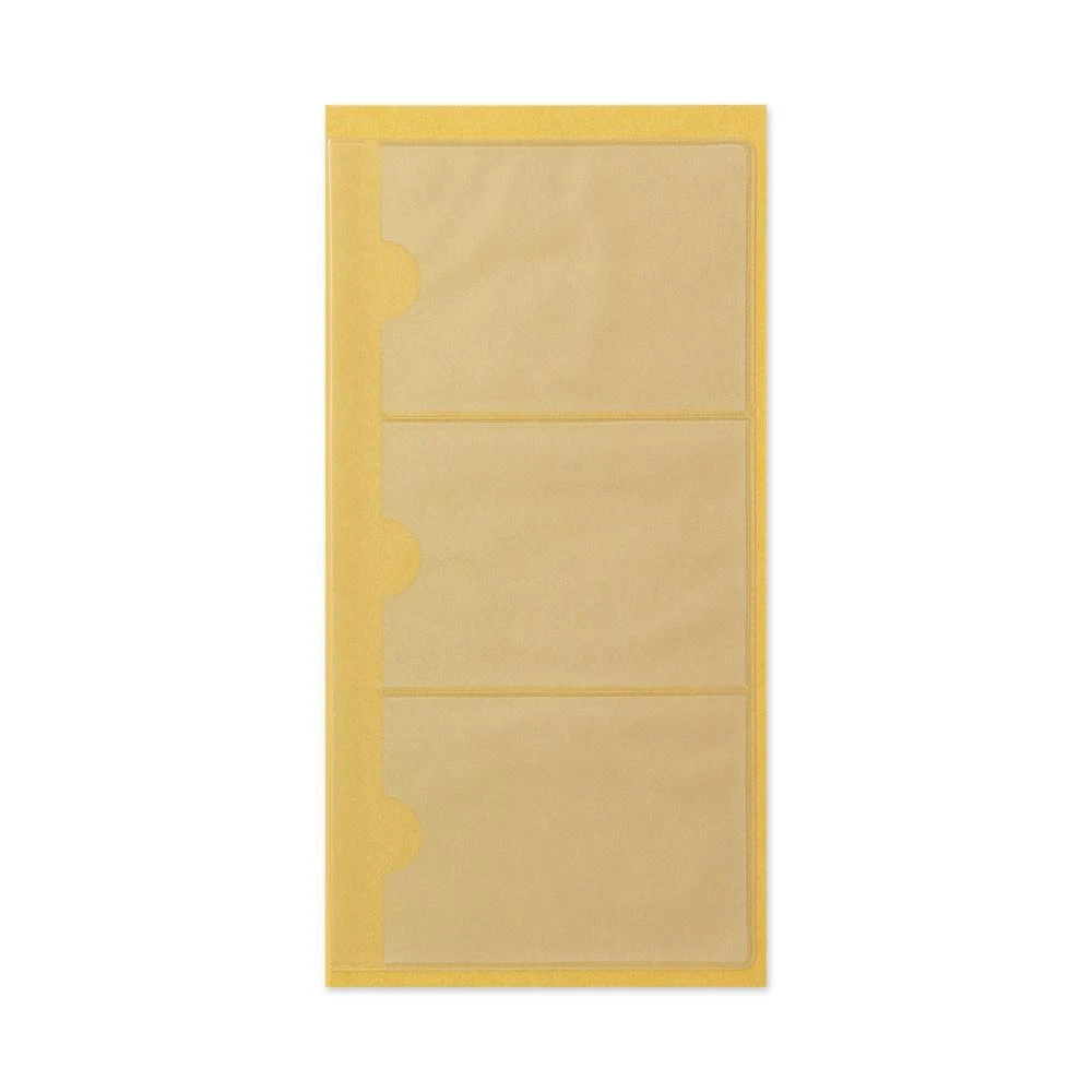 Eine Einlage aus Kunststoff in der Du Visitenkarten, Geldkarten oder Personalausweis in Deinem Traveler’s Notebook unterbringst.