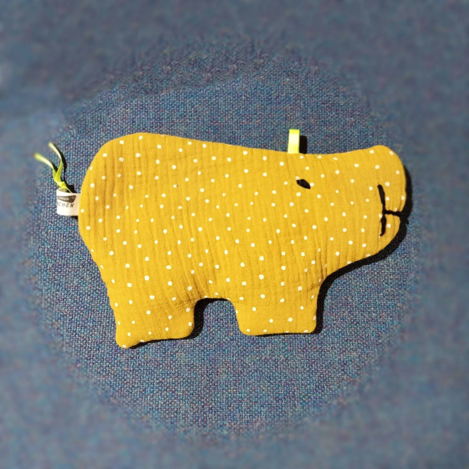 Der Oberstoff besteht aus Baumwolle, die Füllung aus Bio Kirschkernen.Das Kirschkernkissen Nilpferd kann je nach Bedarf kühlen oder wärmen.