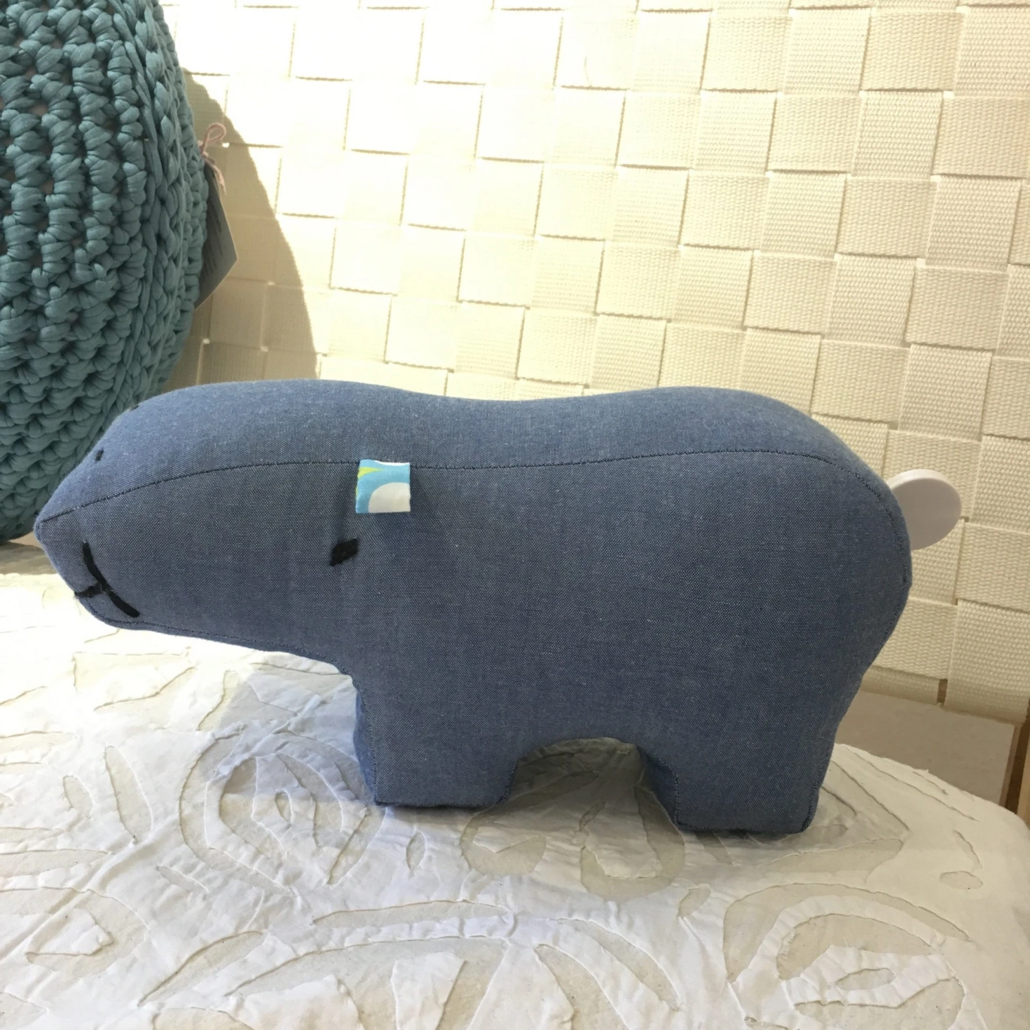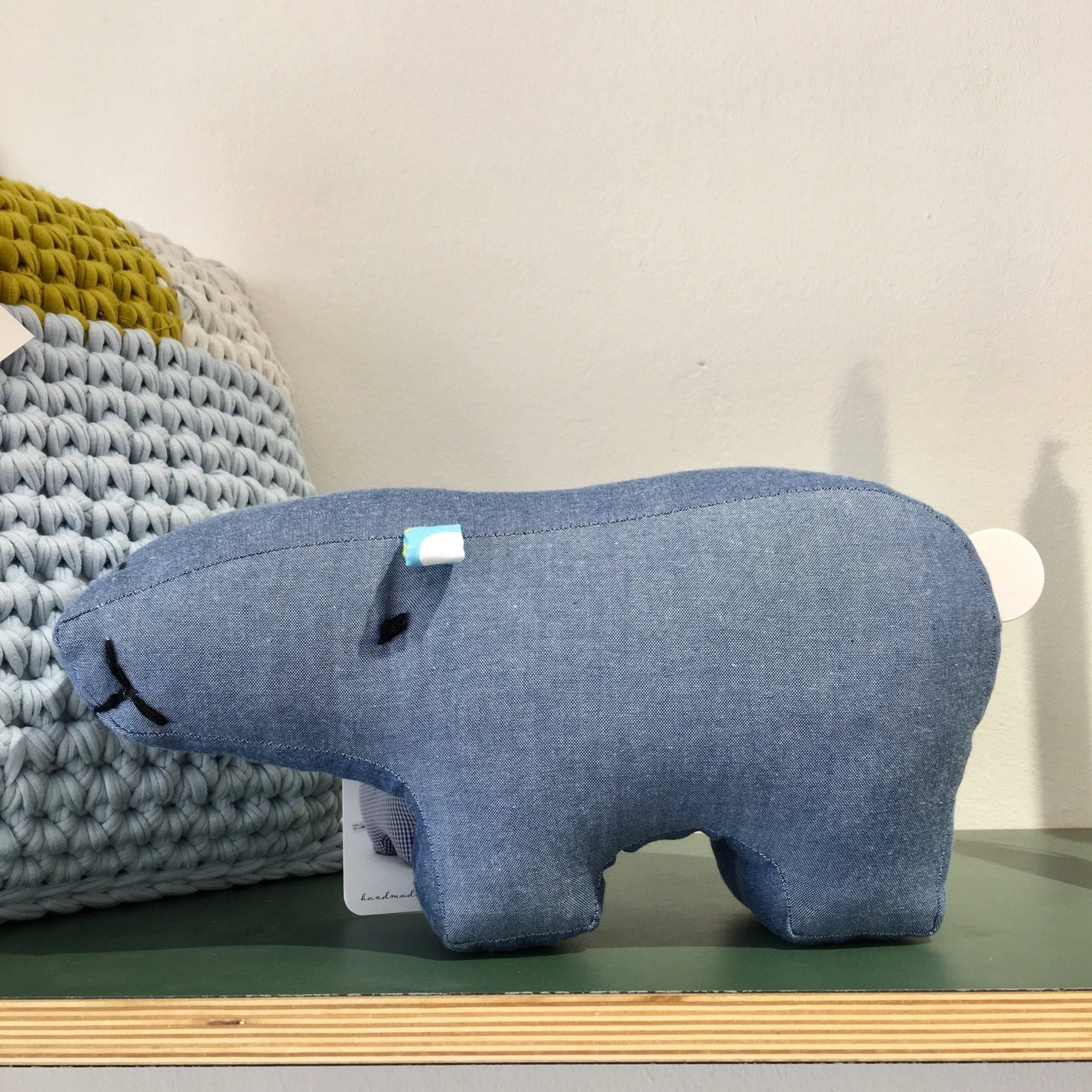 Lustige Nilpferd Spieluhr aus Denim – Stoff für Babys, die von Anfang an zeitlosen Geschmack beweisen.