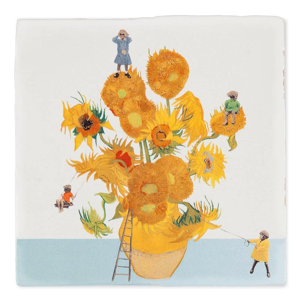 Die Anlehnung an Van Goghs Sonnenblumen ist nicht zu übersehen. Künstlerin Marga van Oers hat das Stilleben mit lebhaften Kintdern komplementiert. Das Kunstwerk entstand in Zusammenarbeit mit dem Van Gogh Museum Amsterdam.